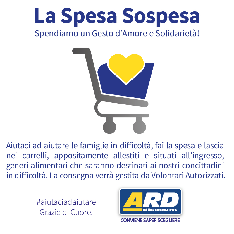 Da oggi in tutti i punti vendita diretti delle insegne Despar, Interspar, Eurospar e Ard Discount della Sicilia sarà possibile acquistare prodotti e donarli a chi non può al momento comprarli (per quanto riguarda l’adesione dei punti vendita affiliati, è rimessa alla discrezionalità del singolo gestore).