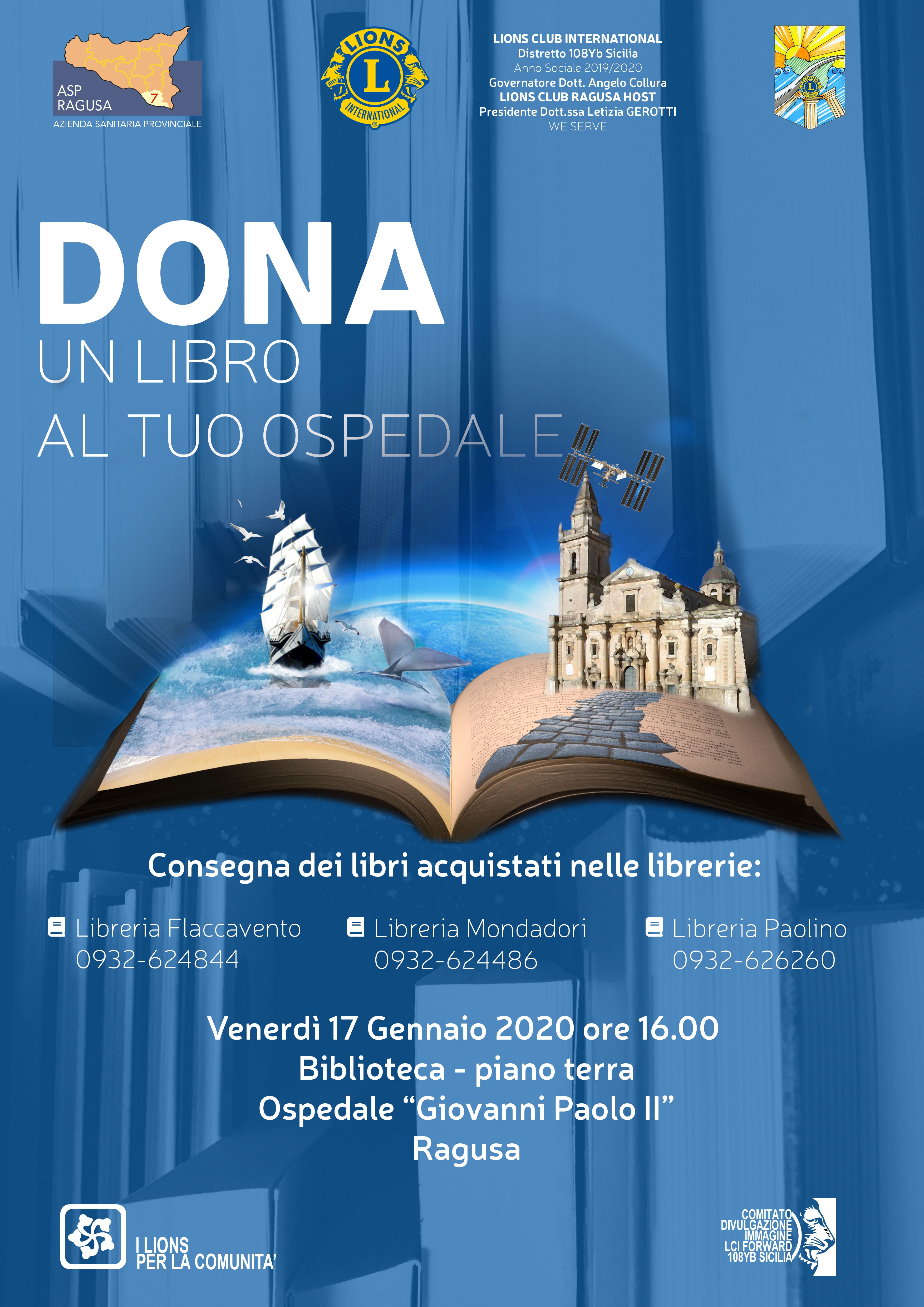 Ragusa, 16 gennaio 2020 – Domani pomeriggio, 17 gennaio 2020, alle ore 16.00 il Lions Club Ragusa Host consegnerà alla biblioteca dell’ospedale “Giovanni Paolo II” numerosi libri che i cittadini ragusani hanno donato a seguito della campagna promossa, appunto, dal Club Service.