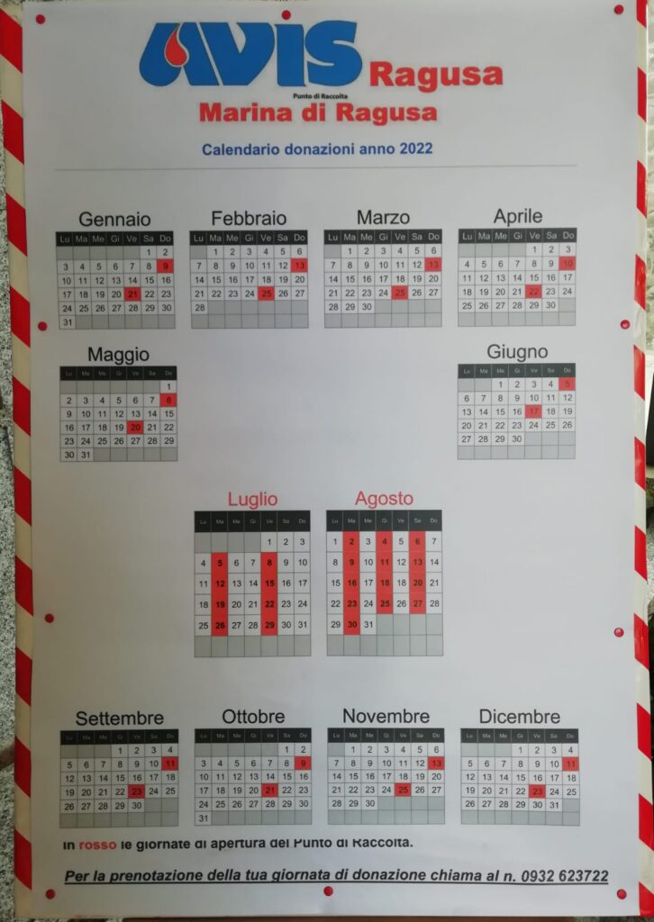 SERENO ANNO NUOVO CON IL CALENDARIO DONAZIONI 2022 A MARINA DI RAGUSA