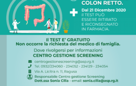 DAL 21 DICEMBRE 2020 IL TEST PUÒ ESSERE RITIRATO E RICONSEGNATO IN FARMACIA È GRATUITO. NON OCCORRE LA RICHIESTA DEL MEDICO DI FAMIGLIA. “LE FARMACIE E L’ ASP ALLEATE NEL FARE PREVENZIONE” – Il Centro Gestione Screening dell’Asp di Ragusa, responsabile dr.ssa Sonia Cilia, comunica che dal 21 dicembre 2020, il test per la ricerca del sangue occulto nelle feci è gestito dalle Farmacie territoriali convenzionate che hanno aderito al protocollo d’intesa fra l’Asp di Ragusa, Federfarma, Associazione distributori farmaceutici (ADF) e Federfarma servizi. Obiettivo primario è quello di potenziare la prevenzione del tumore del