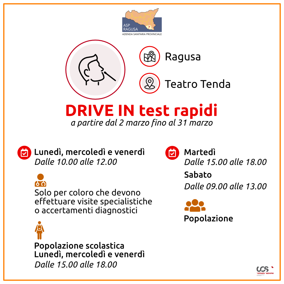 A partire da oggi, e per tutto il mese di marzo 2021, al teatro Tenda di Ragusa si dedicheranno degli appuntamenti settimanali per i test rapidi rivolti alla popolazione scolastica. Nello specifico: