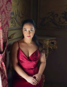 Accanto al maestro Caruso, il mezzosoprano Maria Russo. Diplomata in pianoforte e in canto lirico, si perfeziona frequentando numerose Masterclass Internazionali tra cui alcune tenute alla Sommerakademie del Mozarteum di Salisburgo. È vincitrice di concorsi internazionali per cantanti lirici. Ha cantato in Festival e Teatri in Italia e all’estero, come il Festival Internazionale NotoMusica, Teatro dell’Opera Baltica di Gdansk, Teatro Nazionale dell’Opera di Helsinki, Teatro Massimo “V. Bellini” di Catania -Collaborando con il sestetto d’archi “Italian Ensemble”, formato dalle prime parti dei professori dell’orchestra del Teatro Vincenzo Bellini, Teatro sociale di Rovigo, ecc.. Ha già debuttato in opere di H. Purcell, G. Rossini e G. Donizetti.