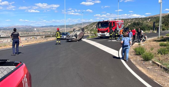 Incidente nella rotatoria in prossimità di Comiso da Ragusa. Coinvolte una y10 e una 500L condotte rispettivamente da due donne. La y10 cappottata e la conducente trasportata in ospedale. Sul posto polizia municipale e Polizia di Stato di Comiso. Vigili del fuoco per la messa in sicurezza delle vetture coinvolte.