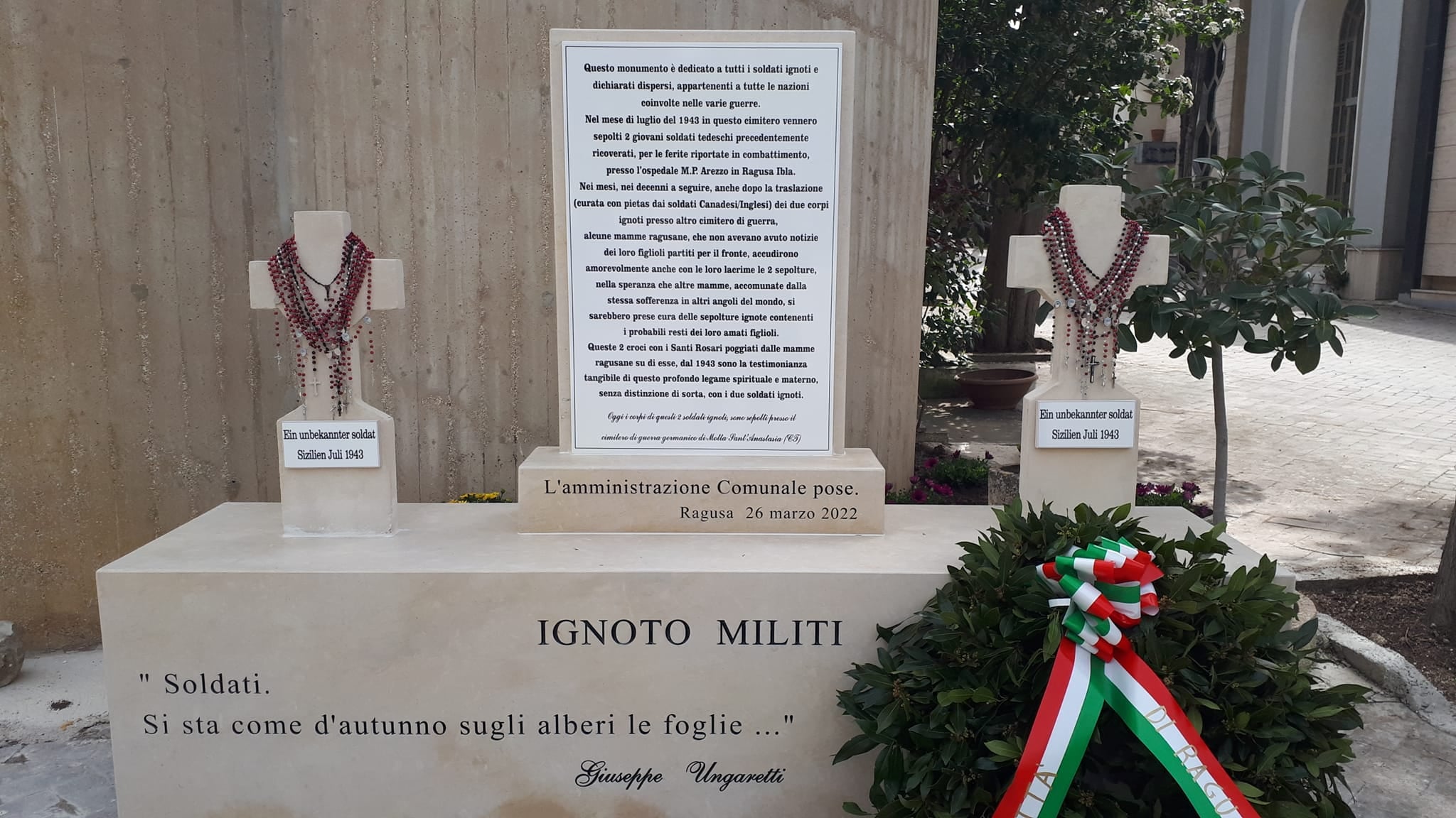 In particolare a Ragusa sono state tumulate le salme di due militari tedeschi ignoti, conservate e curate da mamme Ragusa, in memoria dei propri figli caduti in guerra. Da oggi tutti i ragusani che passeranno davanti al Mausoleo del Milite Ignoto del cimitero di Ibla, potranno recitare un Eterno Riposo in memoria di questi caduti per la Libertà.