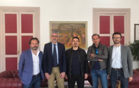 Una troupe di “Sky Arte” formata dal regista Giovanni Caccamo, dall’autore del programma televisivo “Sette meraviglie di Sky Arte”, Filippo Nicosia e dal drone operator, Gianfranco Guccione, sono stati ricevuti stamane al Comune dal sindaco Peppe Cassi e dall’assessore al turismo Ciccio Barone. L’Amministrazione comunale ha infatti stipulato un accordo con la società Barts s.r.l. per realizzare un documentario su Ragusa da trasmettere su Sky Arte HD. Nel corso dell’incontro con gli amministratori comunali il regista del documentario assieme agli altri due componenti la troupe televisiva hanno spiegato il lavoro
