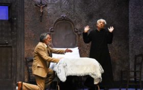 Un gradito ritorno al Teatro Leonardo Sciascia di Chiaramonte Gulfi per l’attore Tuccio Musumeci che porta in scena la prossima domenica 1° marzo, alle ore 21:00 l’esilarante commedia “Fiat Voluntas Dei”, scritta nel 1935 da Giuseppe Macrì. Dopo undici anni Musumeci reinterpreta le vesti di padre Attanasio, in una tresca clandestina del tutto particolare e dove non mancheranno i colpi di scena finali. Una sorta di Romeo e Giulietta in salsa sicula e meno tragica dunque, dove tutti i protagonisti avranno a che fare proprio con padre Attanasio, sempliciotto e