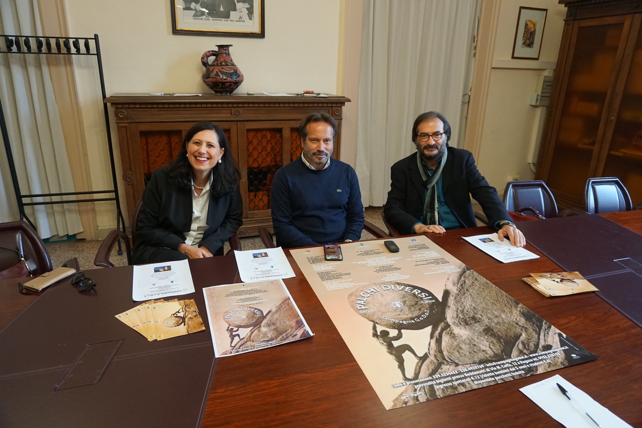 Una 15^ stagione scoppiettante, quella presentata stamani al Comune di Ragusa dalla Compagnia G.o.D.o.T. Undici appuntamenti tra nuove produzioni, attesi ritorni e spettacoli esterni, portati in scena in quella che è ormai la casa G.o.D.o.T., il Teatro Ideal, e al Teatro comunale M. Perracchio: il cartellone messo a punto da Vittorio Bonaccorso e da Federica Bisegna festeggia in grande un nuovo anno di Palchi DiVersi, con il patrocinio gratuito del Comune di Ragusa-Assessorato agli Spettacoli.