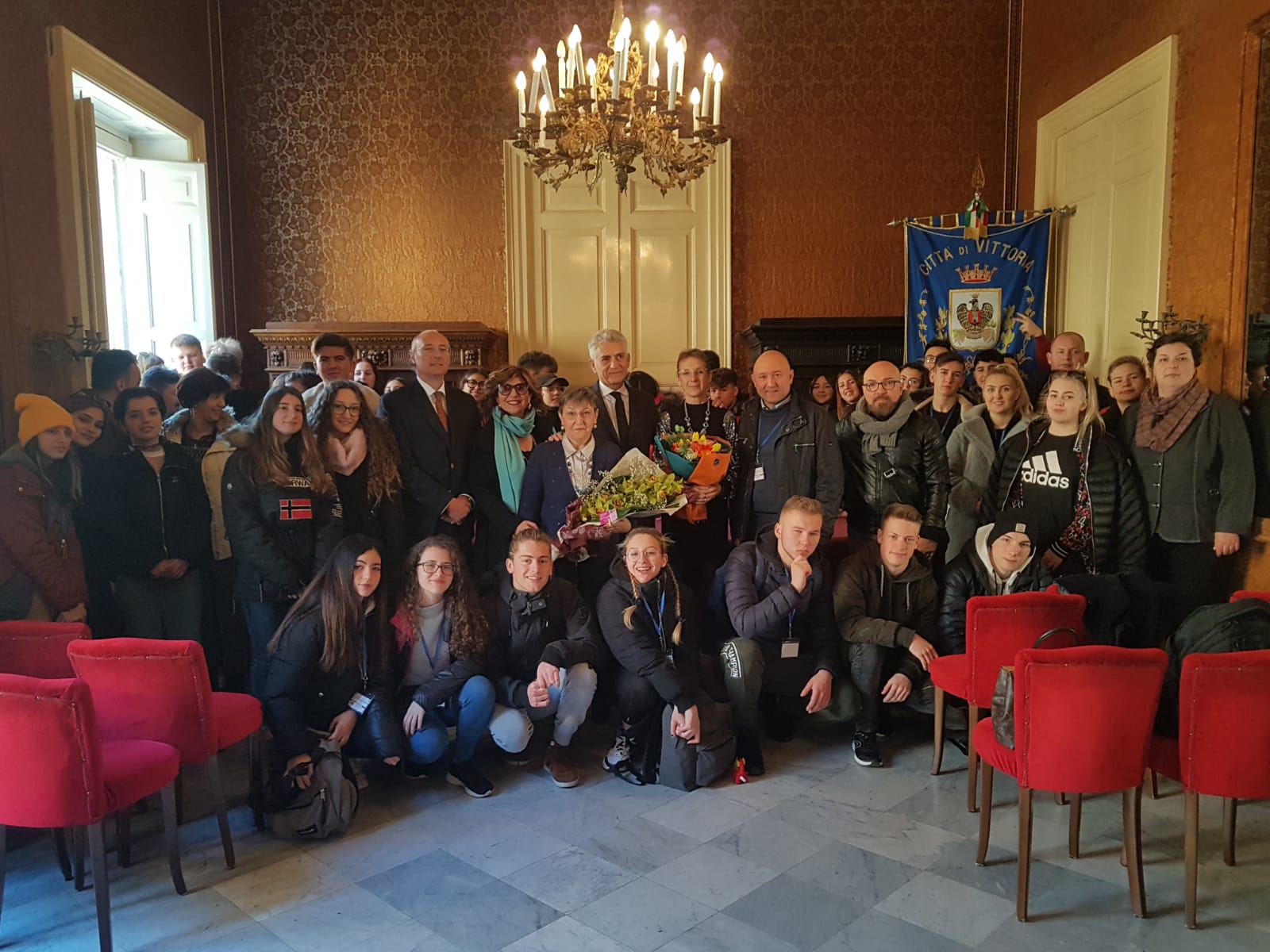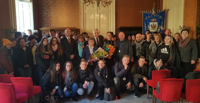 La Commissione Straordinaria del Comune di Vittoria ha ricevuto, questa mattina in Municipio i docenti e gli alunni di diverse nazioni quali Spagna, Lituania Ungheria, Turchia, Romania e Italia, impegnati in un progetto Erasmus assieme ai colleghi dell’Istituto di istruzione superiore Enrico Fermi di Vittoria.